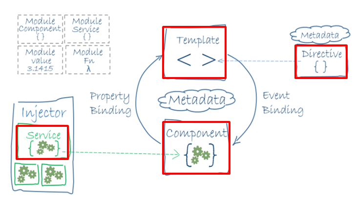| module | 각 구성요소(component,directive,service 등) 관리 |